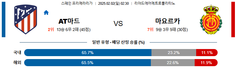 아틀레티코 대 마요르카 라리가 02일02일 맞대결 생중계, 스포츠중계, 스포츠분석
