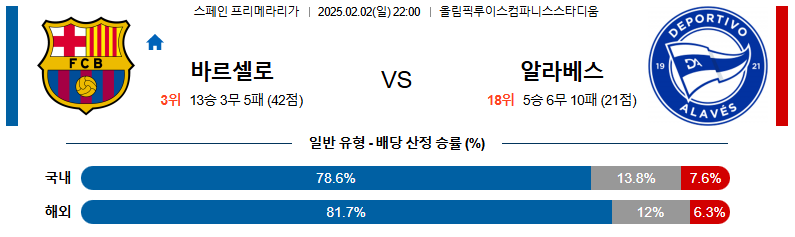 바르셀로나 대 알라베스 라리가 02일02일 맞대결 생중계, 스포츠중계, 스포츠분석