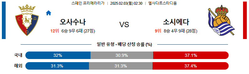 오사수나 대 레알소시에다드 라리가 02일03일 맞대결 생중계, 스포츠중계, 스포츠분석
