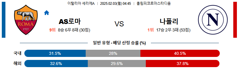 로마 대 나폴리 세리에A 02일03일 맞대결 생중계, 스포츠중계, 스포츠분석