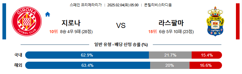 지로나 대 라스팔마스 라리가 02월04일 맞대결 생중계, 스포츠중계, 스포츠분석