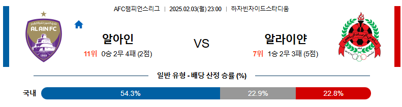 알아인 대 알라이얀 AFC챔스 02월03일 맞대결 생중계, 스포츠중계, 스포츠분석