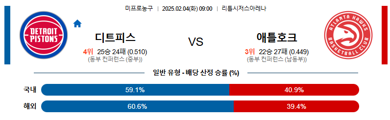 디트로이트 대 애틀란타 NBA 02월04일 맞대결 생중계, 스포츠중계, 스포츠분석