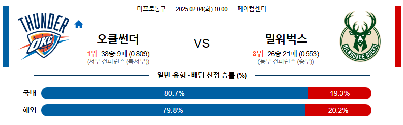 오클라호마 대 밀워키 NBA 02월04일 맞대결 생중계, 스포츠중계, 스포츠분석