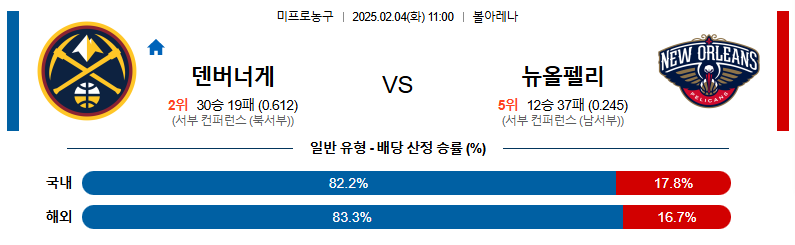 덴버 대 뉴올리언스 NBA 02월04일 맞대결 생중계, 스포츠중계, 스포츠분석
