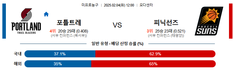 포틀랜드 대 피닉스 NBA 02월04일 맞대결 생중계, 스포츠중계, 스포츠분석