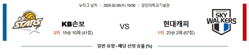 이번 경기는 현대캐피탈이 우세할 것으로 예상됩니다. KB손해보험의 최근 경기력도 좋지만, 현대캐피탈의 전반적인 팀 전력이 더 강력하다는 점을 고려해야 합니다.
