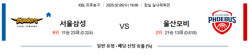 서울삼성 대 울산현대모비스 KBL 02월05일 맞대결 생중계, 스포츠중계, 스포츠분석