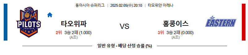타오위안 대 이스턴롱 슈퍼리그 02월05일 맞대결 생중계, 스포츠중계, 스포츠분석