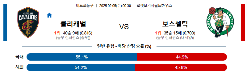 클리블랜드 대 보스턴 NBA 02월05일 맞대결 생중계, 스포츠중계, 스포츠분석