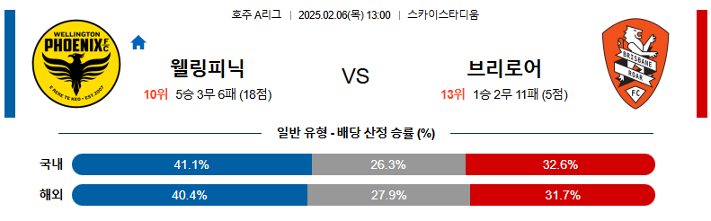 웰링턴피닉스 대 브리즈번로어 호주1부 02월06일 맞대결 생중계, 스포츠중계, 스포츠분석