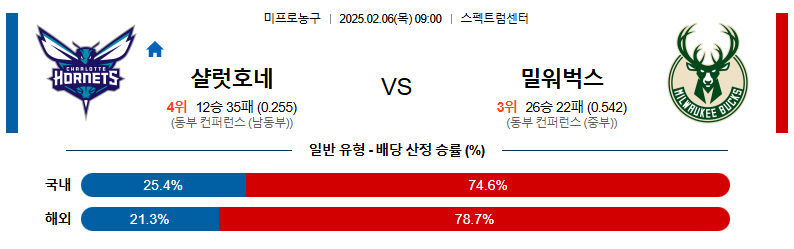 샬럿 대 밀워키 NBA 02월06일 맞대결 생중계, 스포츠중계, 스포츠분석
