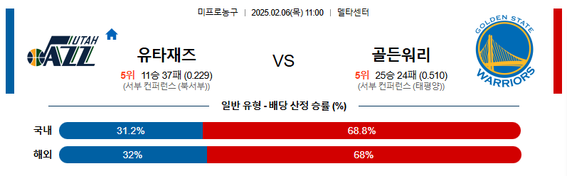 유타 대 골든스테이트 NBA 02월06일 맞대결 생중계, 스포츠중계, 스포츠분석