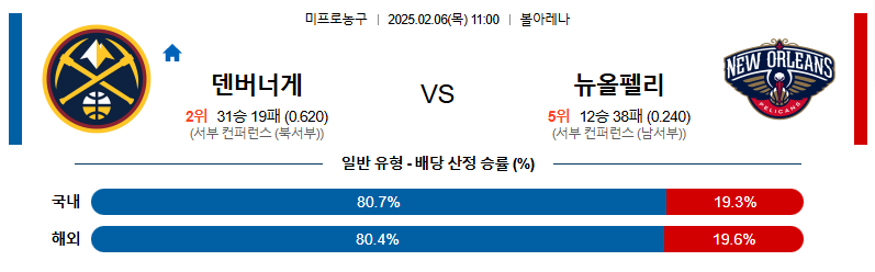 덴버 대 뉴올리언스 NBA 02월06일 맞대결 생중계, 스포츠중계, 스포츠분석