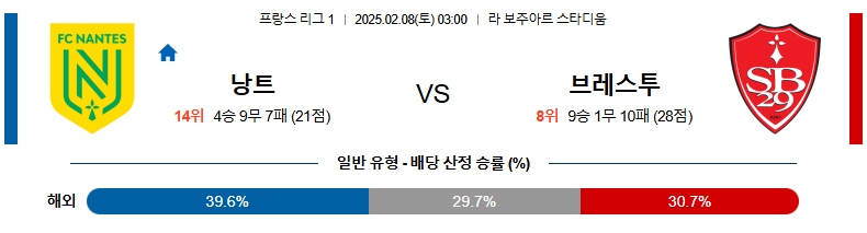 낭트 대 브레스트 리그앙 02월08일 맞대결 생중계, 스포츠중계, 스포츠분석