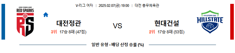 정관장 대 현대건설 V리그(여) 02월07일 맞대결 생중계, 스포츠중계, 스포츠분석