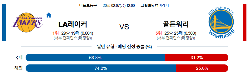 LA레이커스 대 골든스테이트 NBA 02월07일 맞대결 생중계, 스포츠중계, 스포츠분석