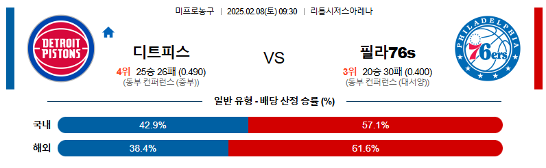 디트로이트 대 필라델피아 NBA 02월08일 맞대결 생중계, 스포츠중계, 스포츠분석