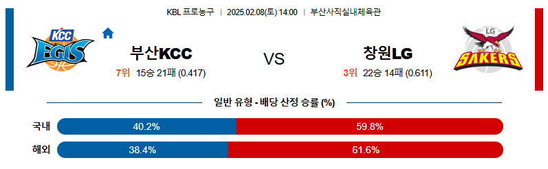 부산KCC 대 창원LG KBL 02월08일 맞대결 생중계, 스포츠중계, 스포츠분석