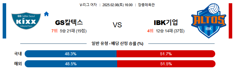 GS칼텍스 대 IBK기업은행 V리그(여) 02월08일 맞대결 생중계, 스포츠중계, 스포츠분석
