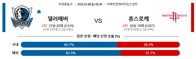 댈러스 대 휴스턴 NBA 02월09일 맞대결 생중계, 스포츠중계, 스포츠분석
