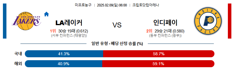 LA레이커스 대 인디애나 NBA 02월09일 맞대결 생중계, 스포츠중계, 스포츠분석
