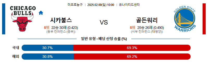 시카고 대 골든스테이트 NBA 02월09일 맞대결 생중계, 스포츠중계, 스포츠분석