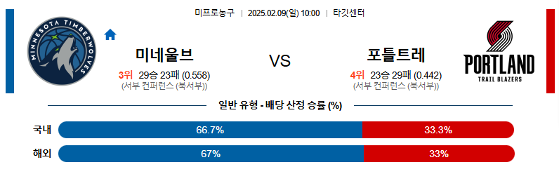 미네소타 대 포틀랜드 NBA 02월09일 맞대결 생중계, 스포츠중계, 스포츠분석