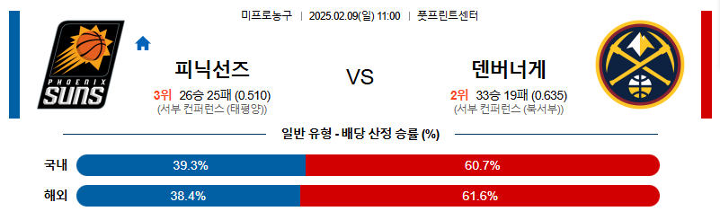 피닉스 대 덴버 NBA 02월09일 맞대결 생중계, 스포츠중계, 스포츠분석