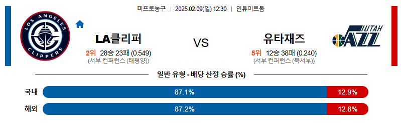 LA클리퍼스 대 유타 NBA 02월09일 맞대결 생중계, 스포츠중계, 스포츠분석