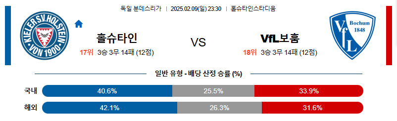 홀슈타인킬 대 보훔 분데스리가 02월09일 맞대결 생중계, 스포츠중계, 스포츠분석