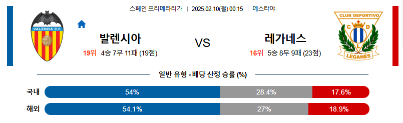 발렌시아 대 레가네스 라리가 02월10일 맞대결 생중계, 스포츠중계, 스포츠분석