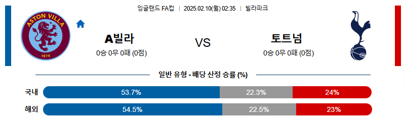 애스턴빌라 대 토트넘 잉글랜드FA컵 02월10일 맞대결 생중계, 스포츠중계, 스포츠분석