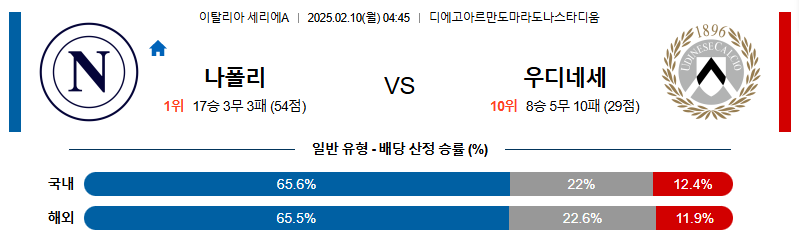 나폴리 대 우디네세 세리에A 02월10일 맞대결 생중계, 스포츠중계, 스포츠분석