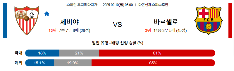 세비야 대 바르셀로나 라리가 02월10일 맞대결 생중계, 스포츠중계, 스포츠분석