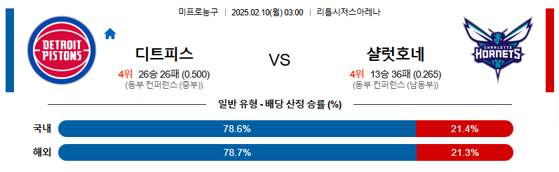 디트로이트 대 샬럿 NBA 02월10일 맞대결 생중계, 스포츠중계, 스포츠분석