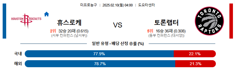 휴스턴 대 토론토 NBA 02월10일 맞대결 생중계, 스포츠중계, 스포츠분석