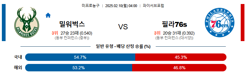 밀워키 대 필라델피아 NBA 02월10일 맞대결 생중계, 스포츠중계, 스포츠분석