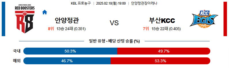 안양정관장 대 부산KCC KBL 02월10일 맞대결 생중계, 스포츠중계, 스포츠분석