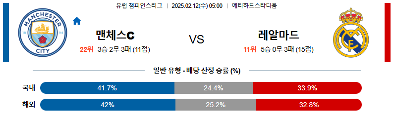맨체스터시티 대 레알마드리드 UEFA챔피언스리그 02월12일 맞대결 생중계, 스포츠중계, 스포츠분석