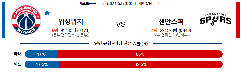 워싱턴 대 샌안토니오 NBA 02월11일 맞대결 생중계, 스포츠중계, 스포츠분석