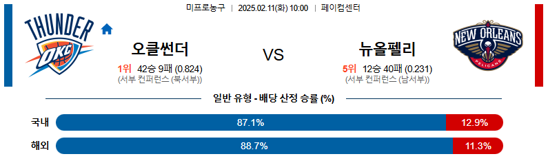 오클라호마 대 뉴올리언스 NBA 02월11일 맞대결 생중계, 스포츠중계, 스포츠분석