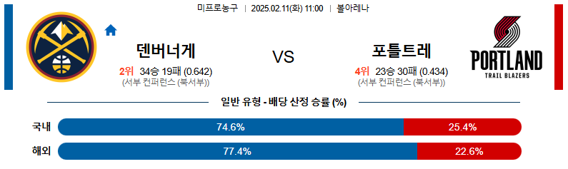 덴버 대 포틀랜드 NBA 02월11일 맞대결 생중계, 스포츠중계, 스포츠분석