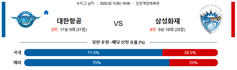 대한항공 대 삼성화재 V리그 02월11일 맞대결 생중계, 스포츠중계, 스포츠분석
