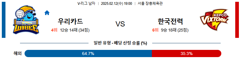 우리카드 대 한국전력 V리그 02월12일 맞대결 생중계, 스포츠중계, 스포츠분석
