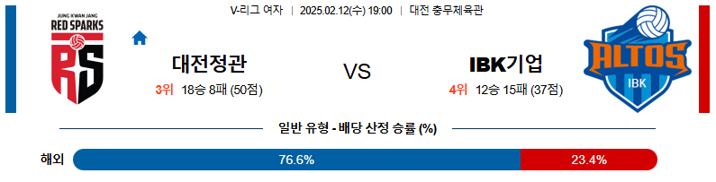 정관장 대 IBK기업은행 V리그(여) 02월12일 맞대결 생중계, 스포츠중계, 스포츠분석