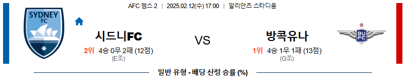 시드니 대 방콕 AFC챔피언스리그2 02월12일 맞대결 생중계, 스포츠중계, 스포츠분석
