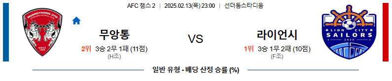 무앙통 대 라이언시티 AFC챔피언스리그2 02월13일 맞대결 생중계, 스포츠중계, 스포츠분석
