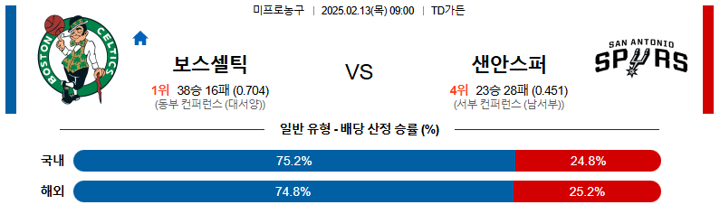보스턴 대 샌안토니오 NBA 02월13일 맞대결 생중계, 스포츠중계, 스포츠분석