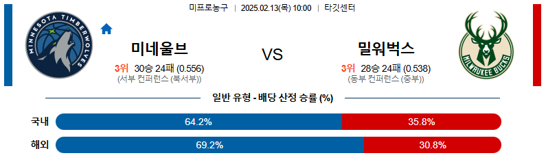 미네소타 대 밀워키 NBA 02월13일 맞대결 생중계, 스포츠중계, 스포츠분석